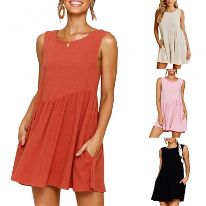 sleeveless,round neck and a loose silhouette,this dress is your perfect choice on these hot days.