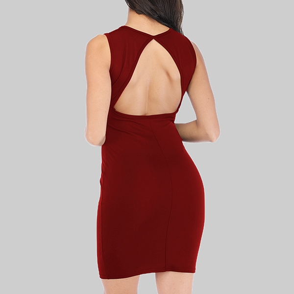 Sexy Backless Sleeveless Round Neck Slim Fit Dress