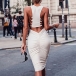 with sleeveless,round neck and backless,sexy and sultry,while the tight silhouette design will amplify