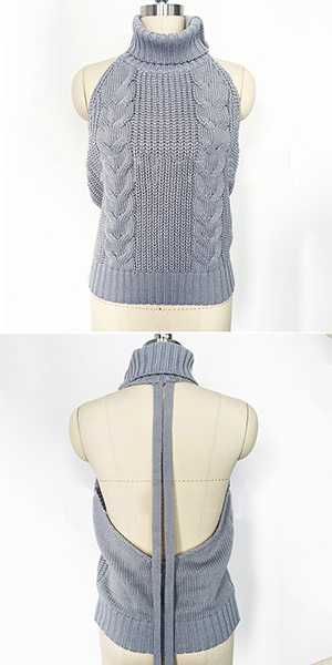 Sexy Backless Sleeveless Turtleneck Knit Sweater