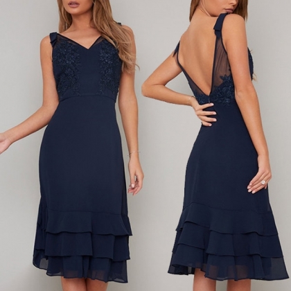 Solid color style,the backless,v-neck and lace spliced design can exude your charming