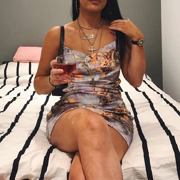 It is a good chance to expose a hint of your charming skin as well as your perfect curve through this sling dress.