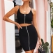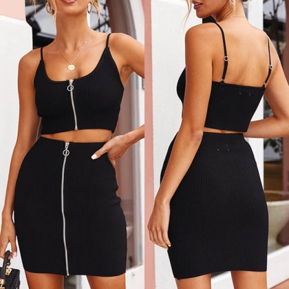 Including a backless sling crop top and a high waist skirt,this two-piece set can help you win more eyes.