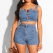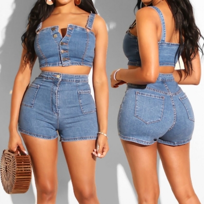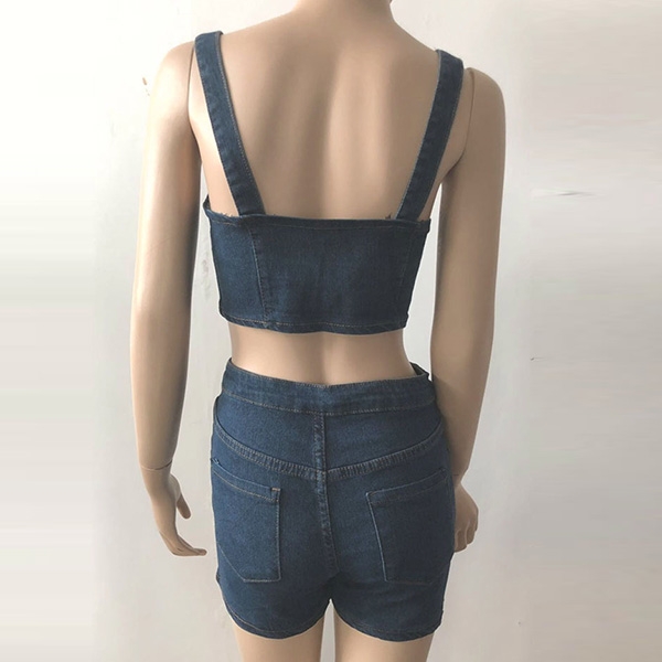 backless sling crop top and a high waist shorts,this two-piece set not only can showcase your