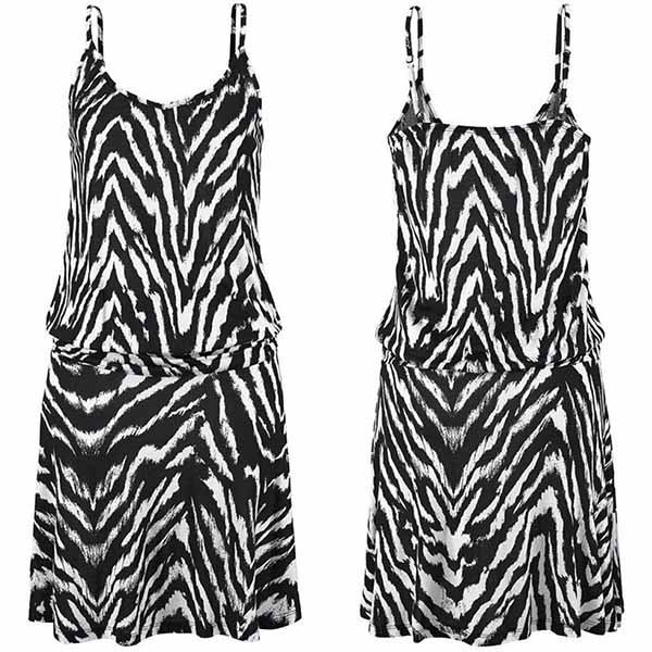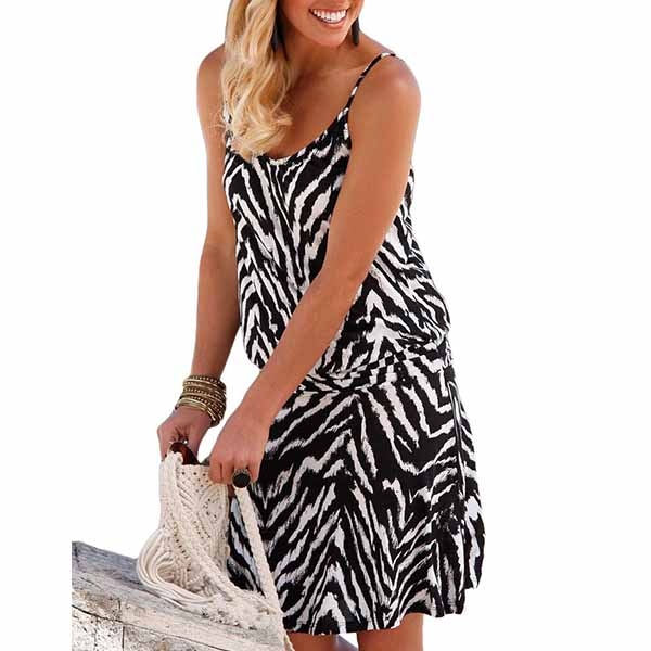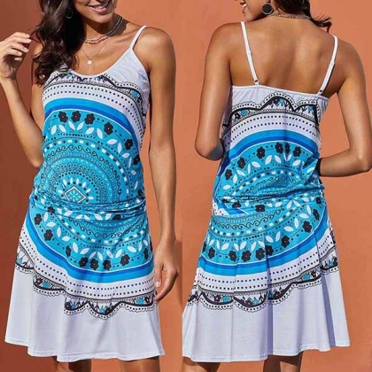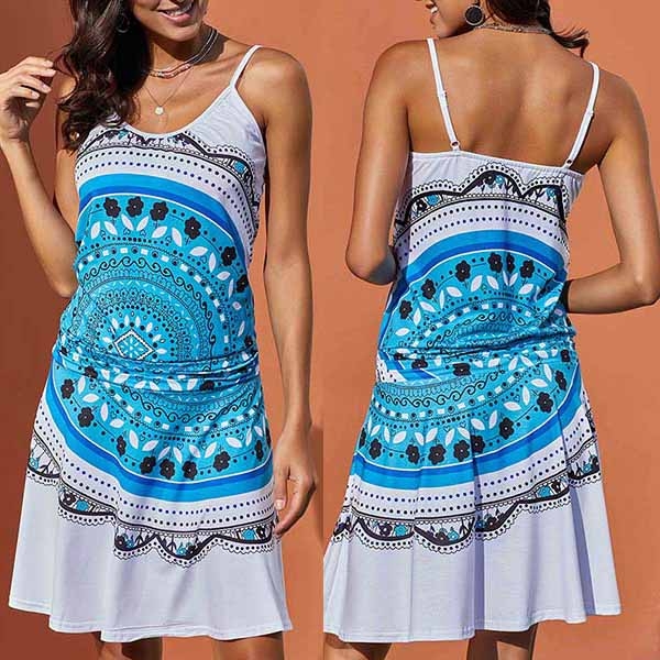 So we suggest you this piece. This sling dress is designed with chic and eye-catching printed pattern,