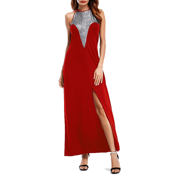 your wardrobe. Its stunning details like backless,slit hem and sequin spliced design make this piece look