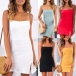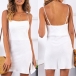 Sexy Backless Slit Hem Solid Color Sling Dress