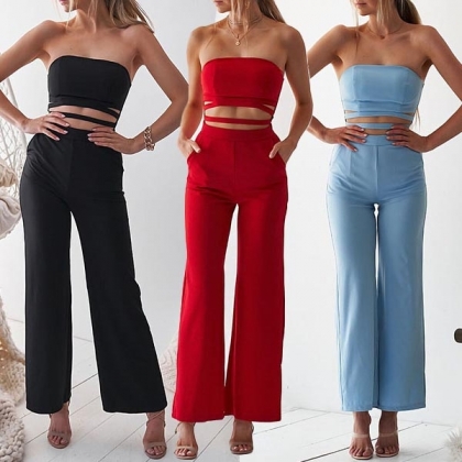 Keep your outfit decision, in the morning simple and easy with this wide-leg tube jumpsuit!