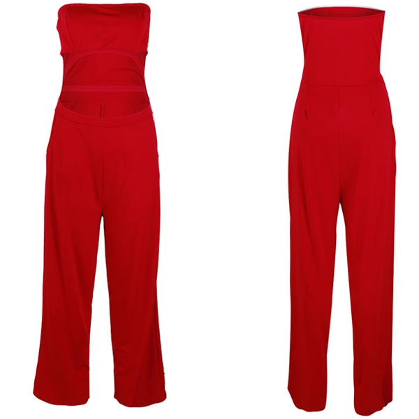 This knit jumpsuit feature one-piece for a clean appeal, features bandeau design on the top