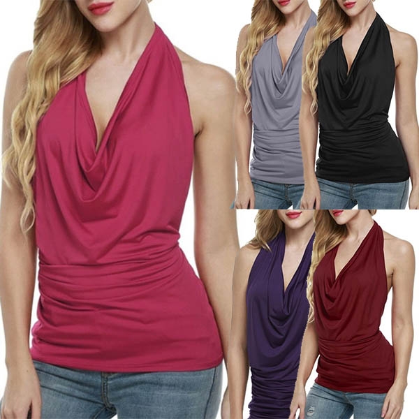 halter design make it look so sexy and distinctive. Unique cowl neck design will further enhance its charm. Like this style? Then let it give you