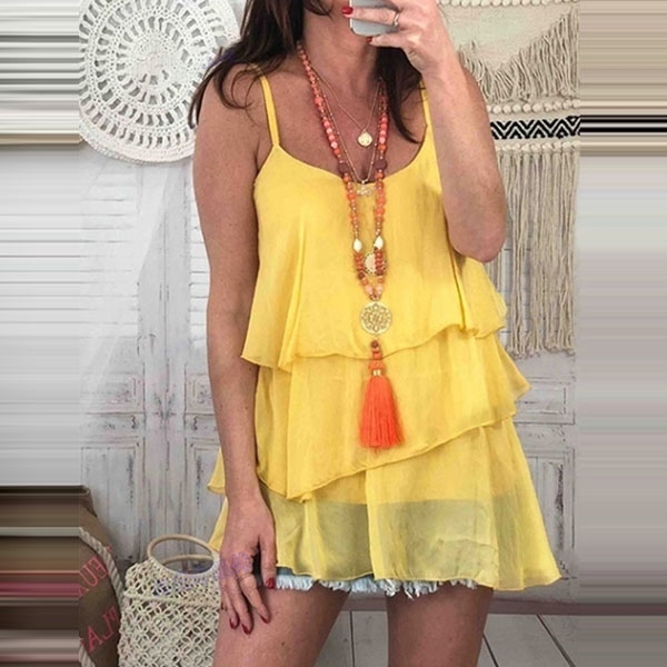 feminine vibes,while the multi-layer hem design will make this piece look more attractive.