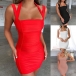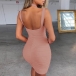 Sexy Backless Solid Color Slim Fit Halter Dress