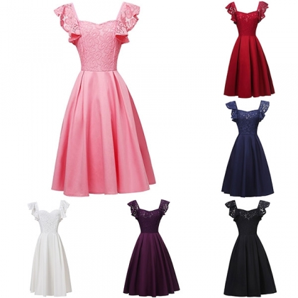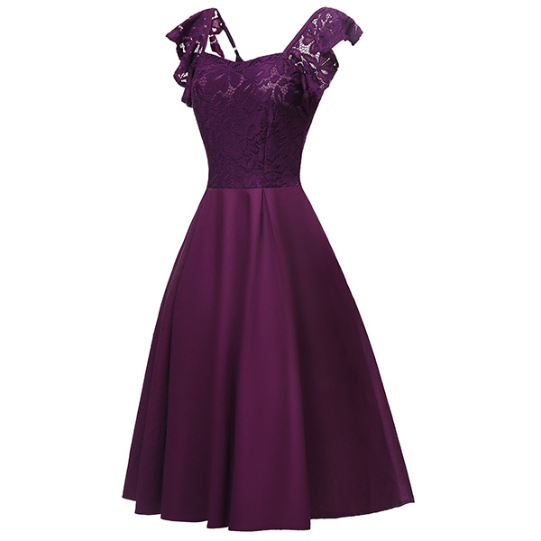 The backless,lotus sleeve,square collar and lace spliced details not only can enhance your feminine