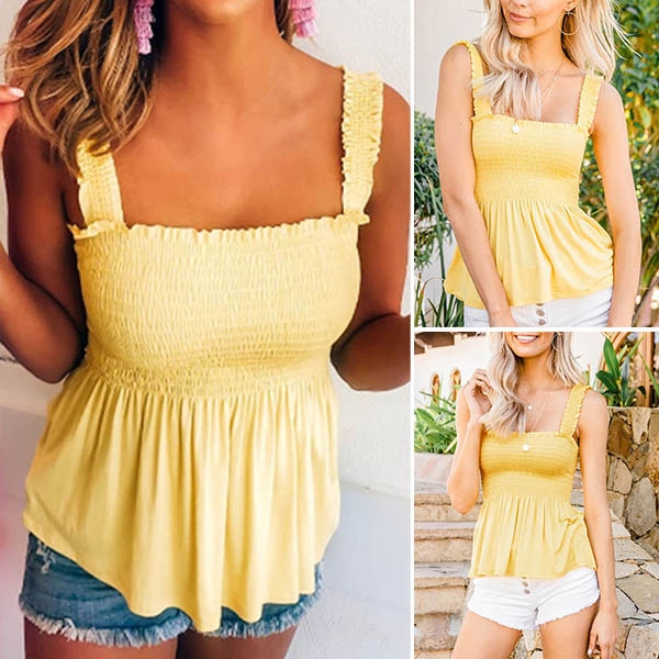 Embrace the warmth of a sunny weekend with a delightfully piece such as this top. Sling style,