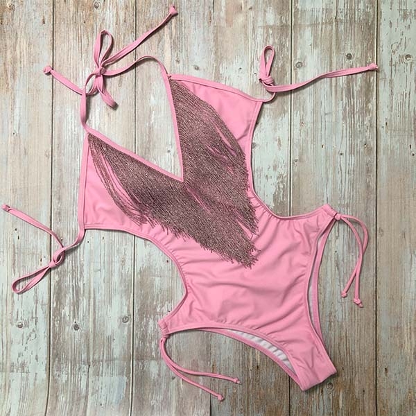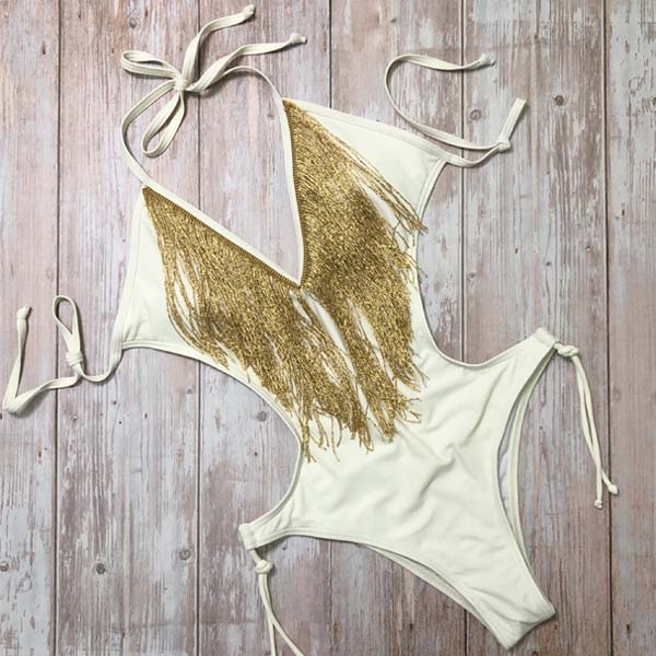 Halter style,the backless and tassel details make this piece look so sexy and distinctive. A perfect choice for your beach days!