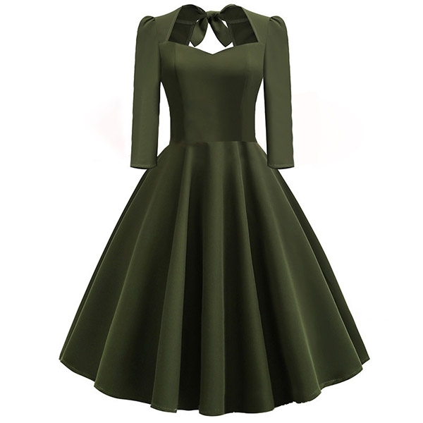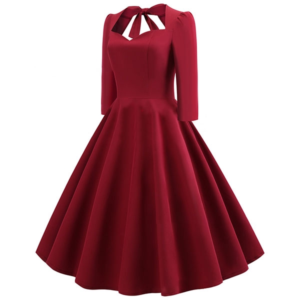 You can showcase your elegant and feminine side through this delicate dress. Boasts a solid color,finished with 3/4 sleeve