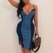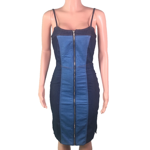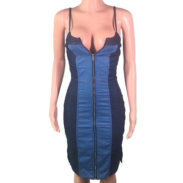 Seductive appeal can come easily once you slip into this denim dress. Sling style,with backless,