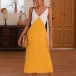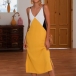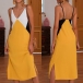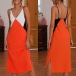 with backless and v-neck design,this dress will portray your flirty look,while the contrast color