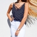 it is finished with backless,v-neck and dots printed design,sexy yet stylish. A fashion