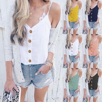 v-neck and front-button design,sexy yet attractive. Try to match with a shorts to have