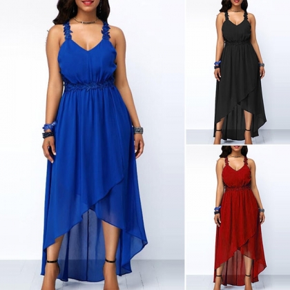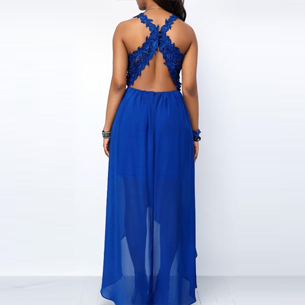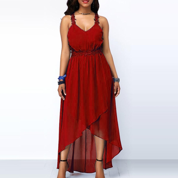 v-neck and a high-low hem,sexy yet feminine. Moreover,the lace spliced design will make this piece