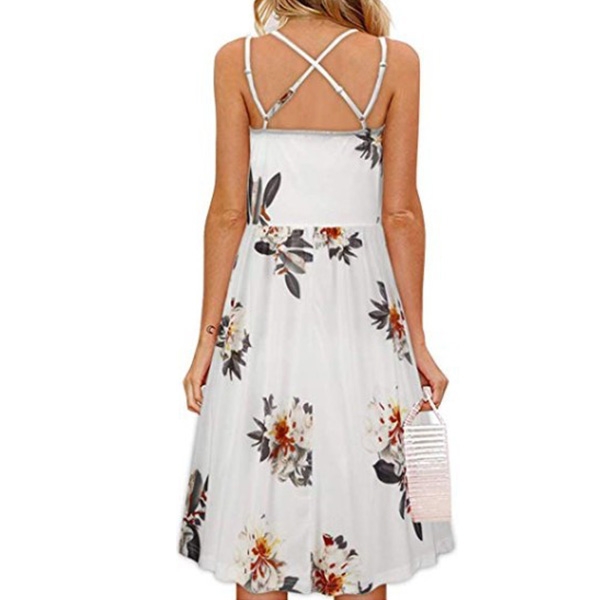 Sling style,with backless and v-neck design,sexy and alluring. And its vibrant floral print details will