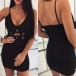 Sexy Backless V-neck Hollow Out Lace-up High Waist Sling Dress