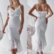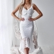 Sling style,with backless,v-neck and an irregular hem,this dress can exude your charming side.