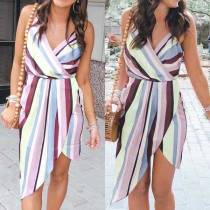 v-neck and an irregular hem design,sexy yet alluring. The striped element design will make this