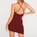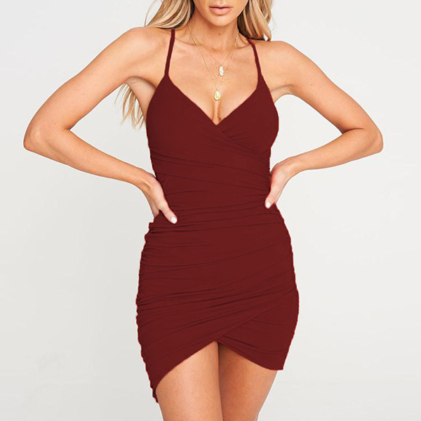 Sexy Backless V-neck Irregular Hem Sling Tight Dress