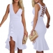 and irregular ruffle hem design make this piece look so sexy and flirty. The high waist and fit silhouette