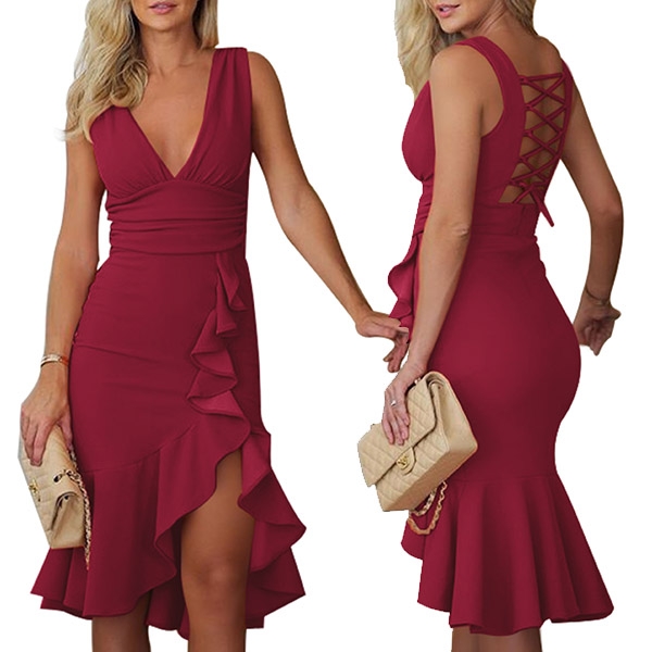Flutter some hearts tonight in this darling dress.Its alluring design details like backless,deep v-neck