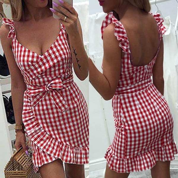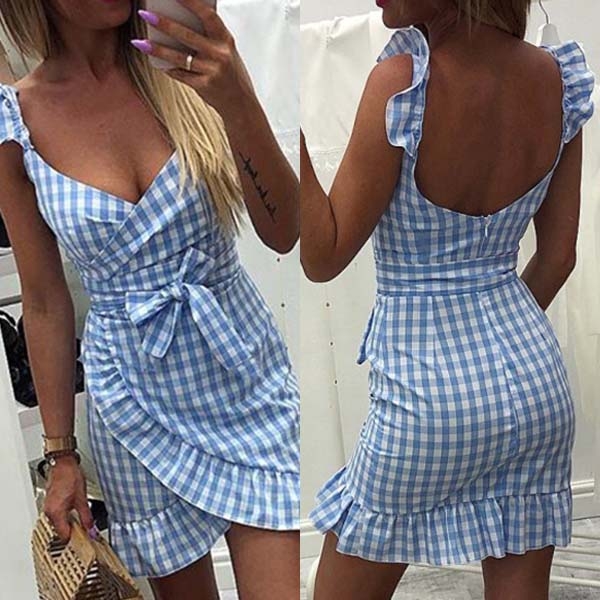 Wanna a sexy and charming dating look? Then we suggest you choosing this sling dress. The plaid element