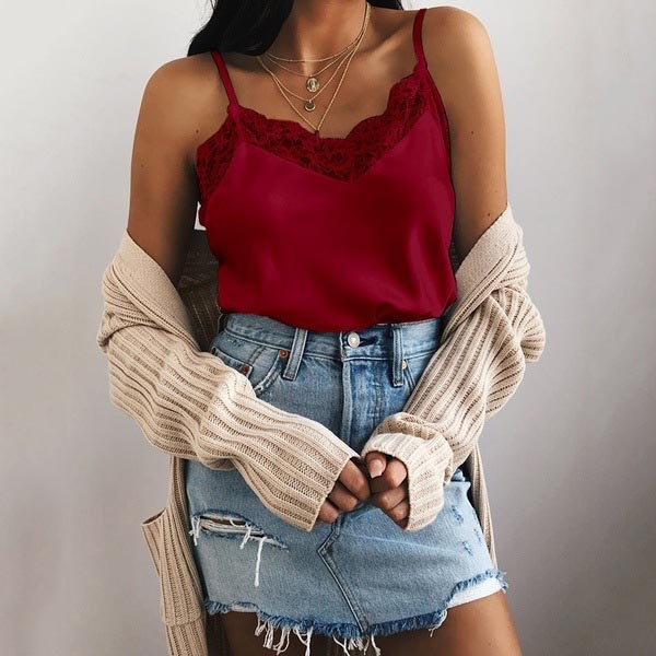 v-neck and lace spliced design make this piece look so sexy and alluring. It not only can
