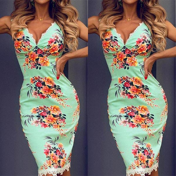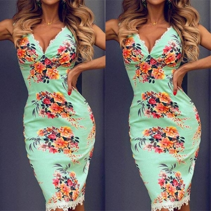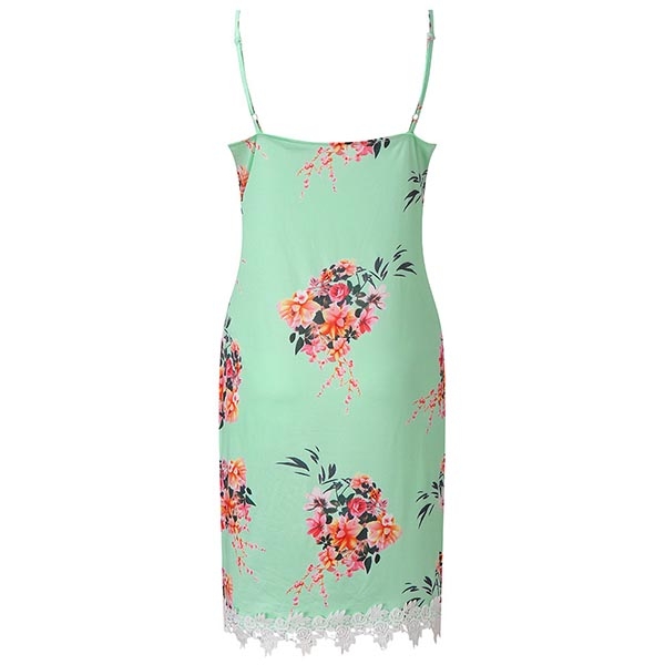Sling style,its backless,v-neck and lace spliced design make this piece look more alluring.