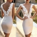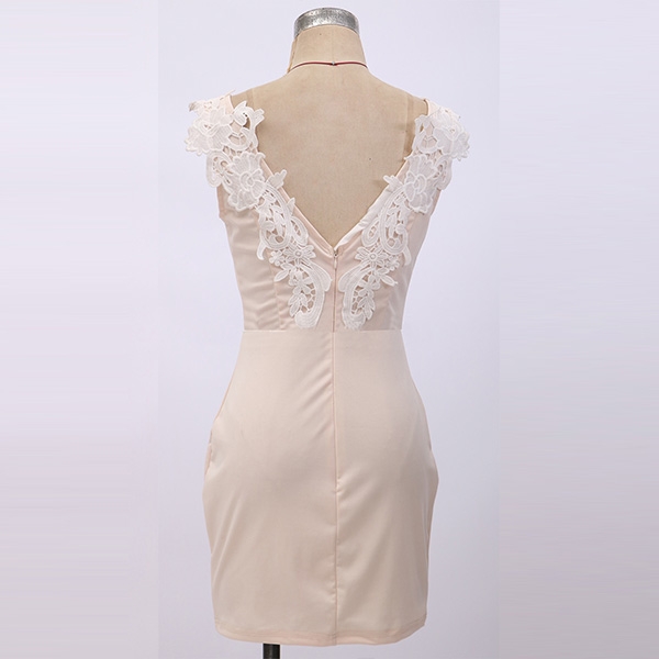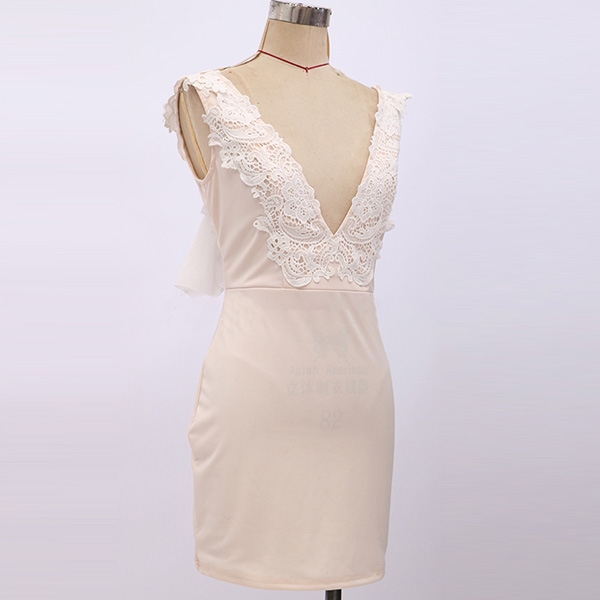 this breathtaking dress. Its alluring design details like backless,deep v-neck and lace spliced design