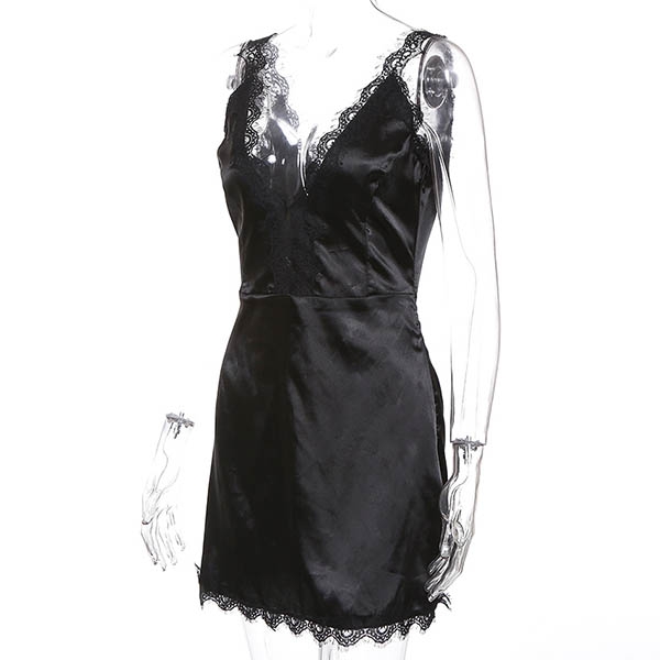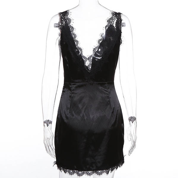This dress comes with a flattering and mysterious black tone,the backless,v-neck and lace spliced