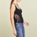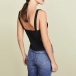 This tank top comes with a classic yet flattering black tone,its backless,v-neck and lace spliced