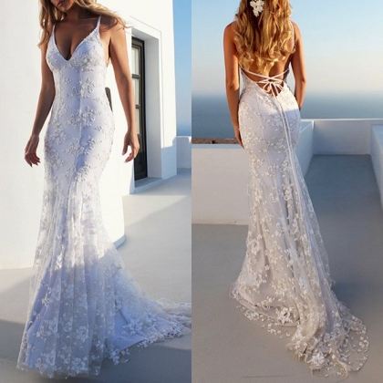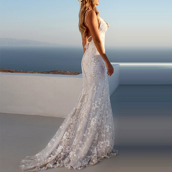 Sexy Backless V-neck Lace Spliced Sling Party Dress