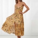 coming with vibrant floral print details,the backless,v-neck,slit hem and lace spliced design