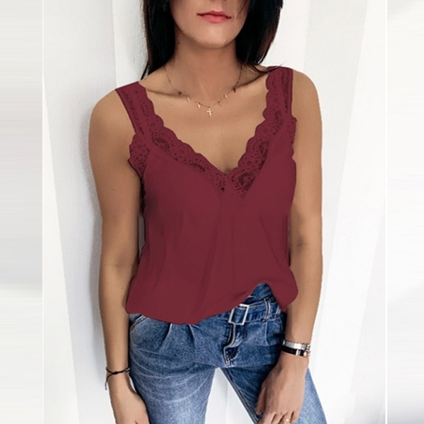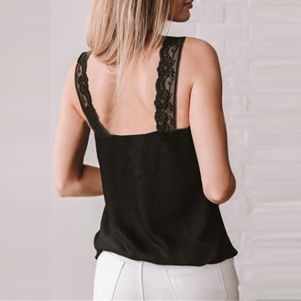 v-neck and lace spliced details,this piece knows how to expose your charming skin as well as