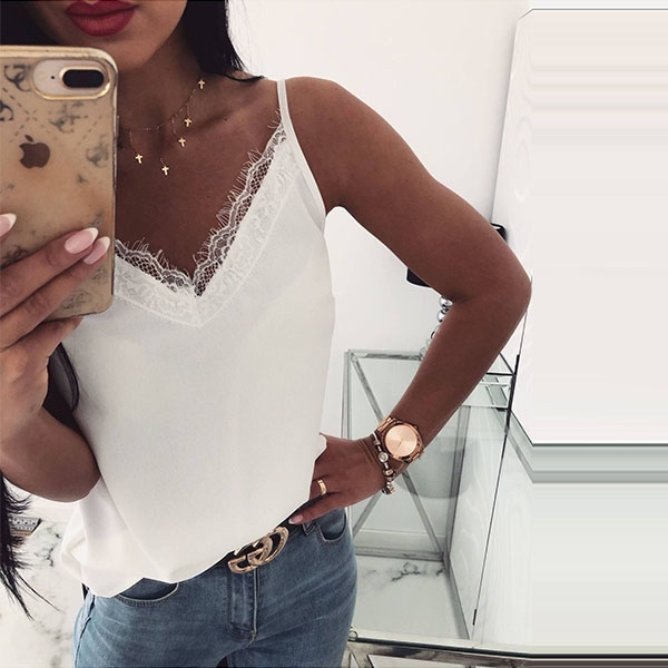 v-neck and lace spliced design will offer you a sexier look. It not only can expose your charming skin,