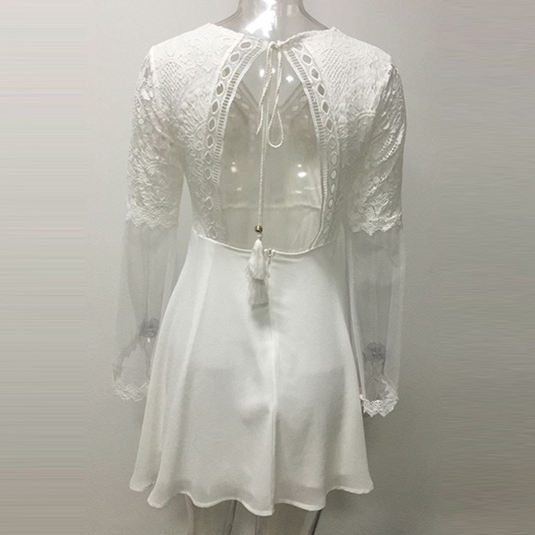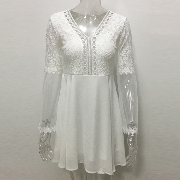 v-neck and lace spliced trumpet sleeve design,which can offer you a flirty look. When invited to a