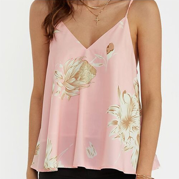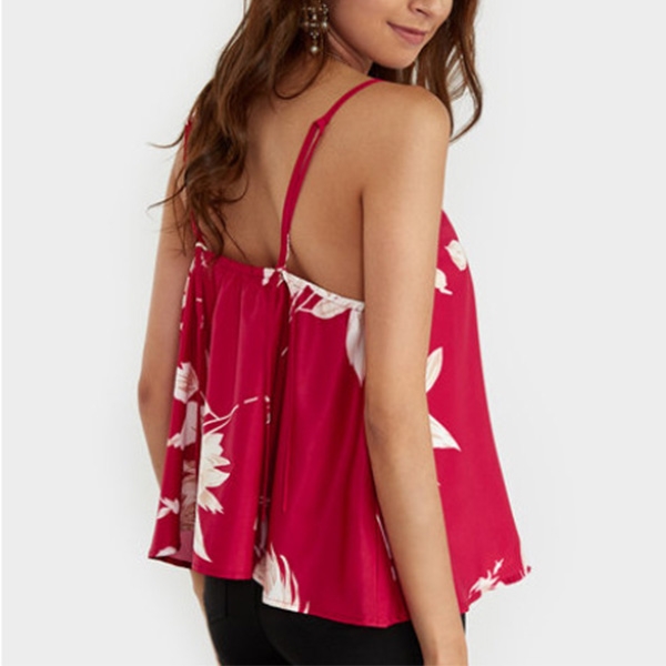 Sling style,with backless and v-neck design,this printed cami top is your perfect choice in these