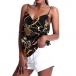 you this piece. It is crafted from soft and breathable fabric,with backless and v-neck design,this printed