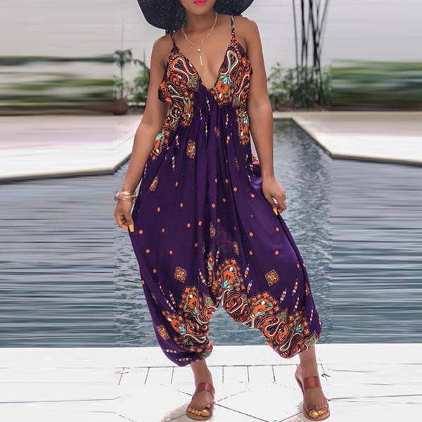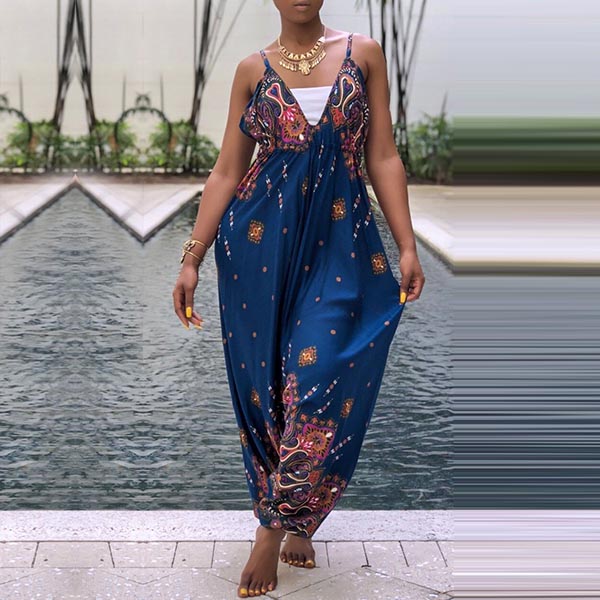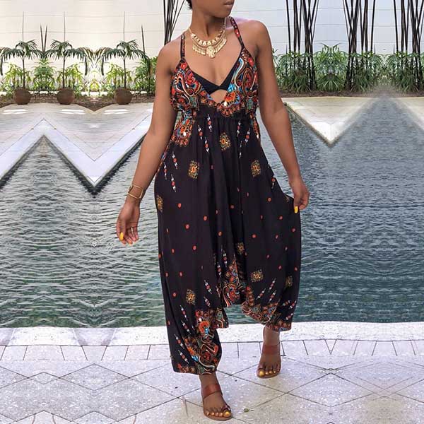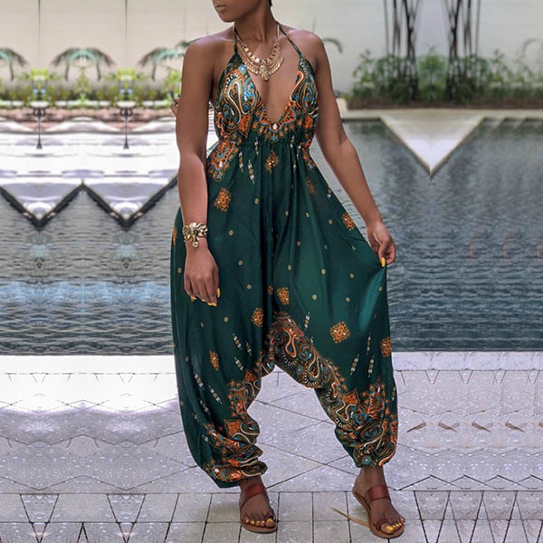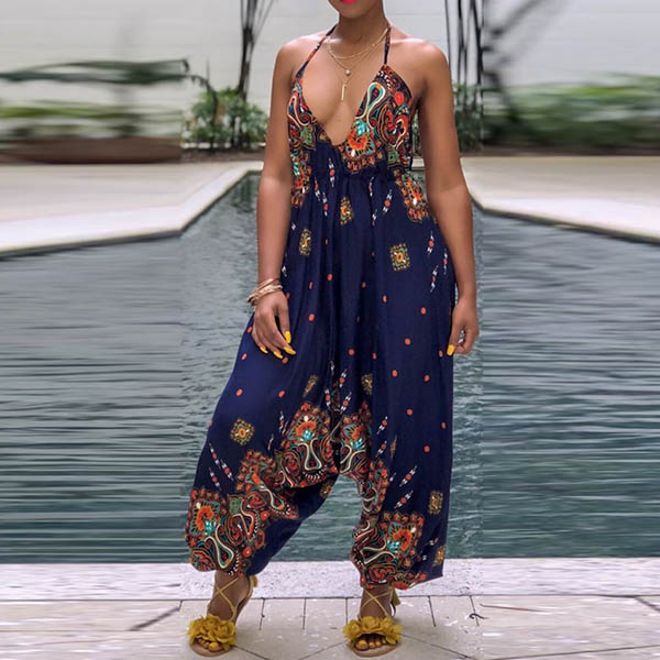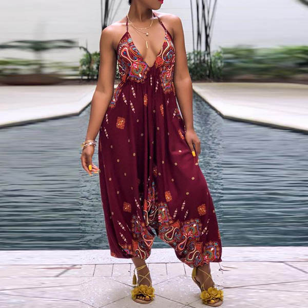 Exude a sense of sexy and sultry flavor by donning this halter jumpsuit! Comes with chic printed pattern,