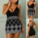 v-neck and backless design can offer you a sexier look,and the rhinestone spliced design will