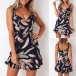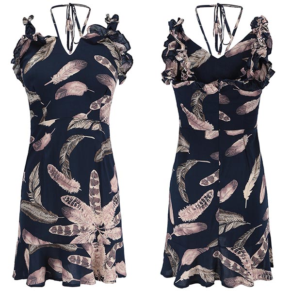 Boasts vibrant floral print,finished with backless,v-neck and ruffle hem design,this sling dress knows