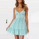 boasting vibrant floral print,accompanied with backless,v-neck and ruffle hem,this dress can express