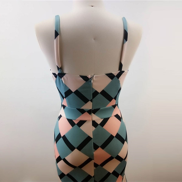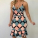 it is finished with v-neck,backless,ruffle hem and contrast color printed design,sexy and flirty. For your